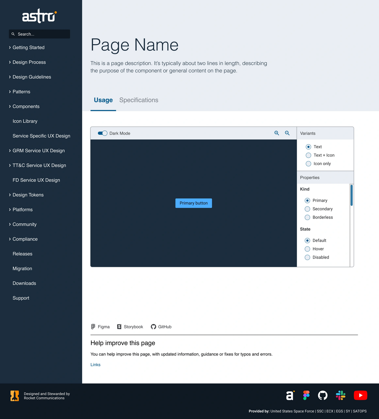 I had the privilege of serving as a designer on Astro as well as being a user. Following my time on Astro, I was assigned to a project where we were assisting the United States Space Force. Throughout this project, we utilized the Astro design system to create applications. While working with the design system, I discovered that many of our decisions were beneficial, but there was also a need for new components, enhancements to existing components, and the removal of unnecessary components that caused difficulties for users.