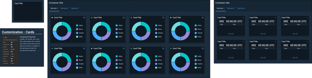 Developed several components, including our card component. It was one of the initial components where we integrated Figma's component properties. This feature enabled users to conveniently modify the component without the need to access the layers panel for edits. Additionally, we implemented "slots" to facilitate users in swiftly replacing content with either pre-existing components or locally built custom components.