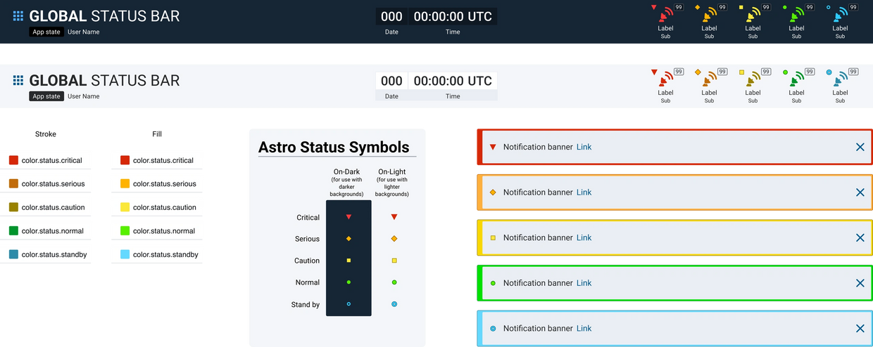 Astro features status symbols and status colors which are used to indicate different levels of severity.